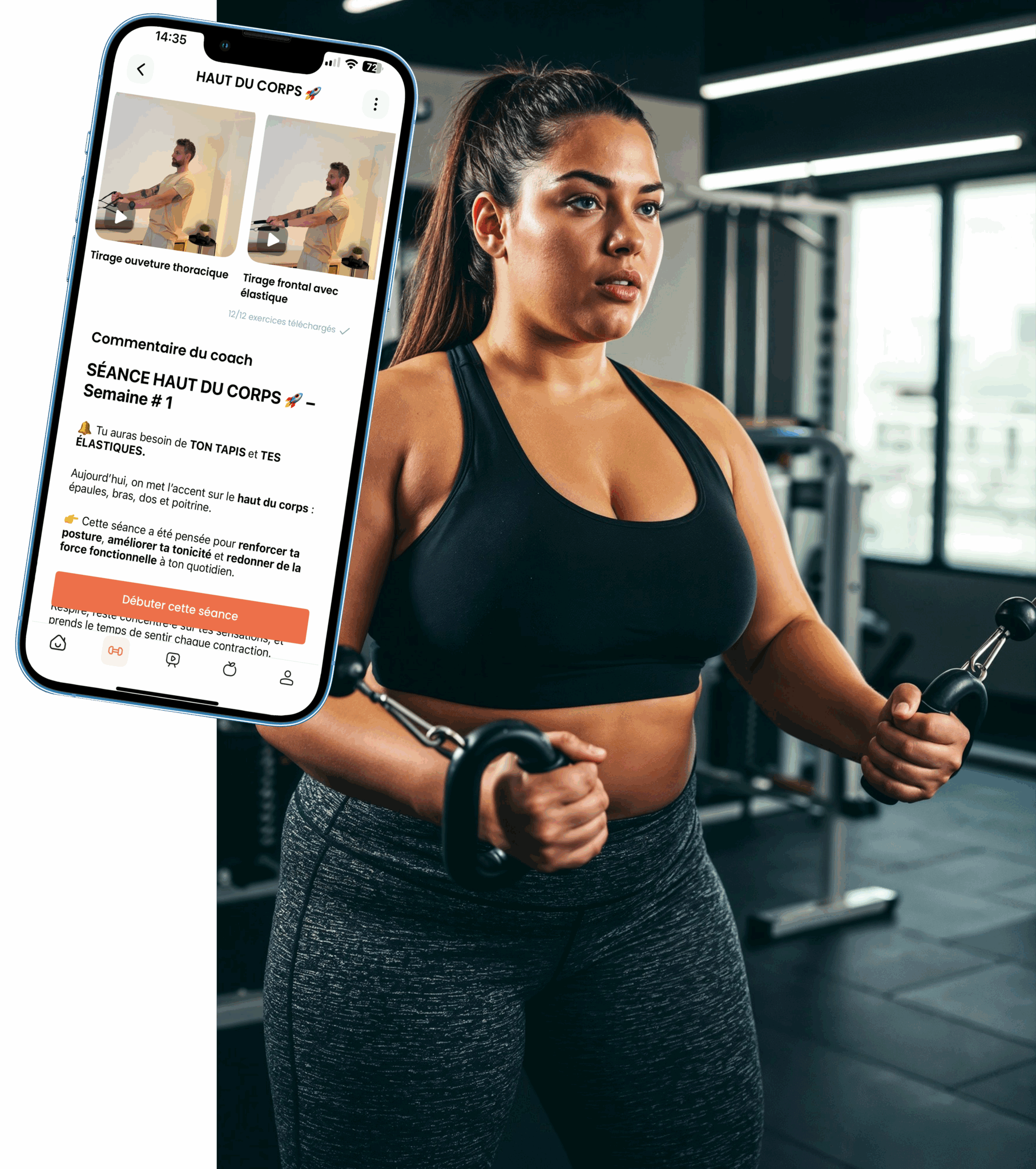 Durant 8 semaines, vous suivrez une progression claire et sécurisée, combinant séances de musculation adaptées, podcasts éducatifs, routines d’habitudes, H.I.I.T et outils nutritionnels pour soutenir votre évolution de l’intérieur comme de l’extérieur. Chaque séance devient un pas concret vers votre nouvel équilibre.